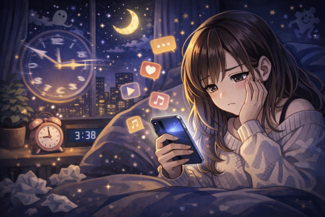 夜に部屋でダラダラスマホを眺めながら